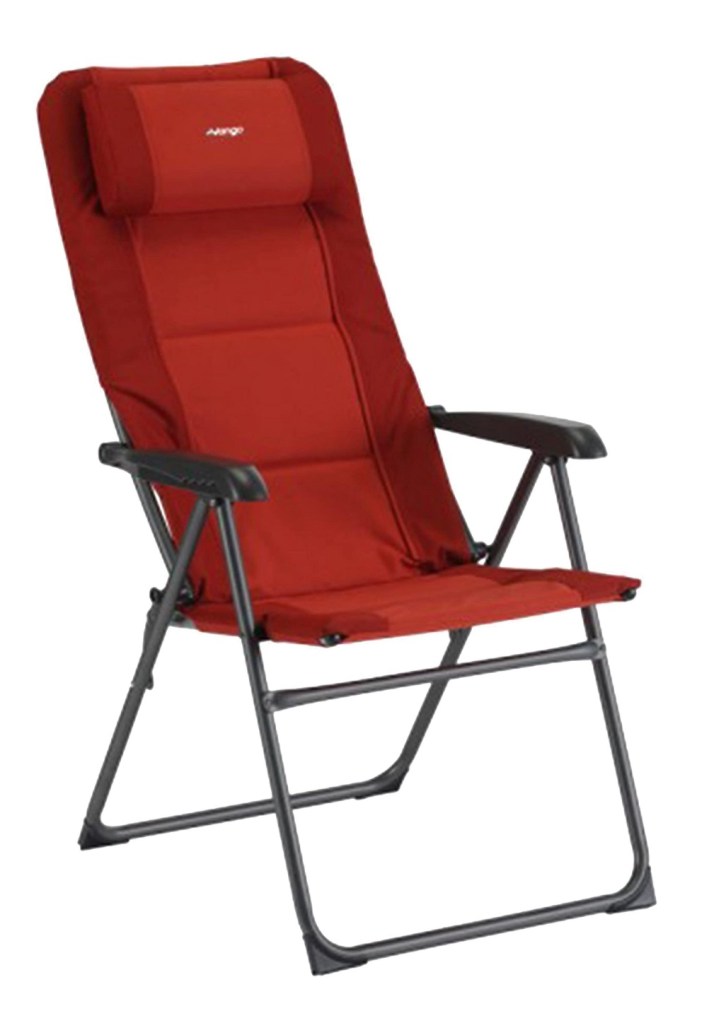 - Vango Hampton DLX reclining / folding chairs – full size reclining camp chairs, which fold almost flat so they fit inside the roof in the pop top (we have removed the mattresses though) and are so comfortable and strong (rated at 140kgs, so even I can use them!). Coupled with a blanket, very cosy.